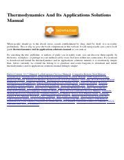 Download THERMODYNAMICS AND ITS APPLICATIONS SOLUTION MANUAL EBOOK Reader ManyBooks